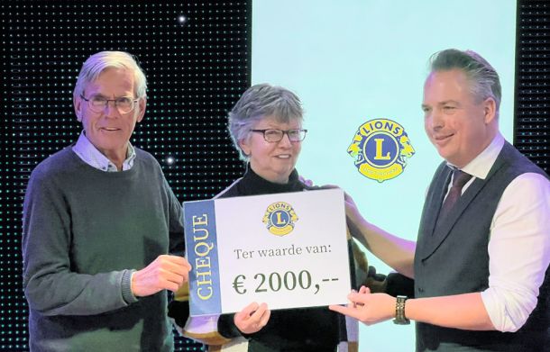 Op de foto: Ton ten Have, penningmeester, en Maria Wolterinck, manager van Het Oude IJssel Huis ontvingen de cheque uit handen van Sander Teunissen, president van de Lions Doetinche